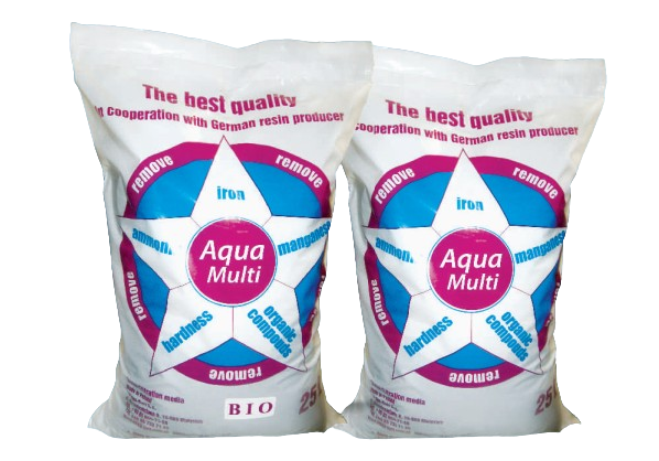 AquaMulti și AquaMulti BIO sunt medii filtrante multifuncționale destinate tratării apei potabile și industriale. Produsul combină cinci componente active (schimbători de ioni și materiale adsorbante) pentru eliminarea simultană a principalelor probleme din apă: duritate, fier, mangan, amoniu și materie organică.