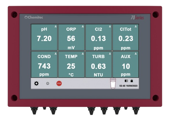Controllerul 70 Series DW de la Chemitec este un dispozitiv avansat de monitorizare și control, proiectat pentru gestionarea eficientă a proceselor din stațiile de tratare a apei potabile și industriale. Cu un ecran color de 7" și o interfață intuitivă, acest controller oferă o soluție completă pentru măsurarea și reglarea parametrilor cheie ai apei.